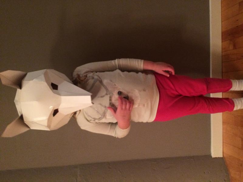 Maya served up a tiny piece of pizza on a tiny plate for her puppy