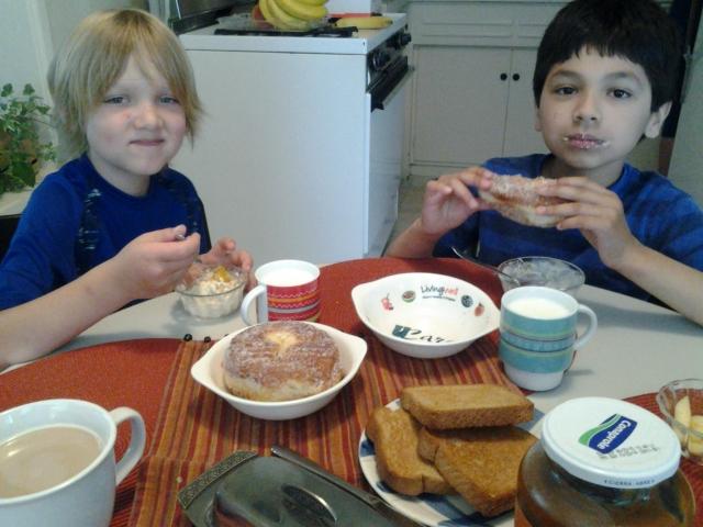 Post-sleepover breakfast with Lorenzo