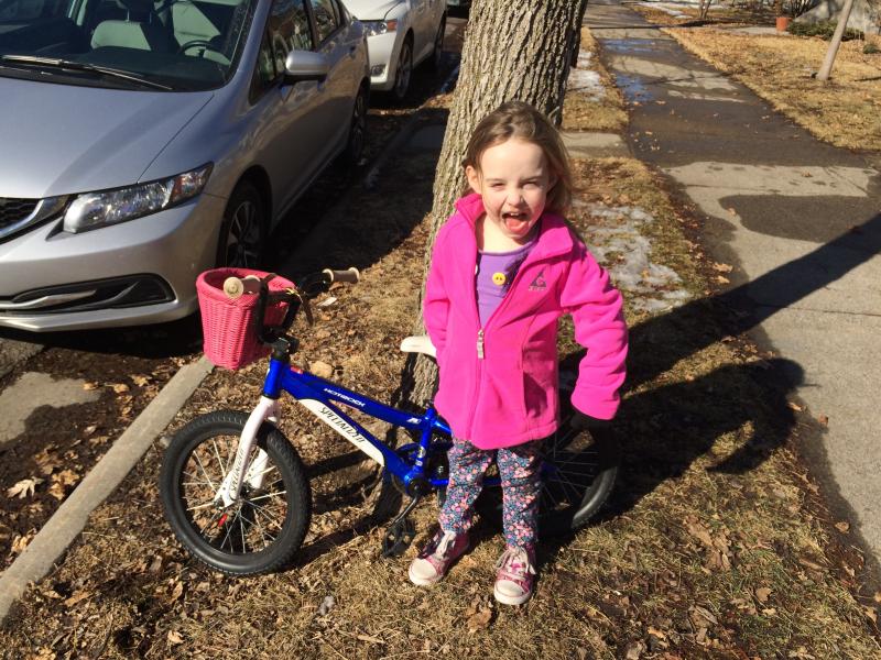 Maya rode her bike today! And after 1/2 a block she crashed but came up smiling (eventually)...