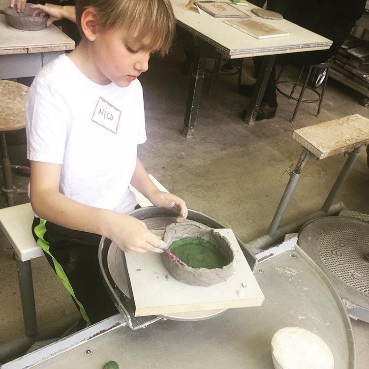 Nico making a bowl for a soup kitchen
