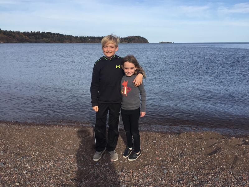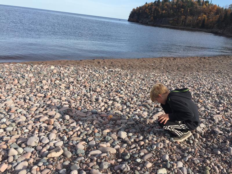 Nico looking for agates at Beaver Bay