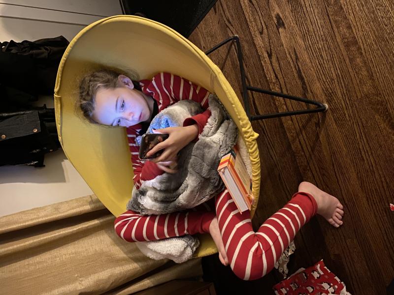 Maya got a fuzzy blanket and a phone for Christmas