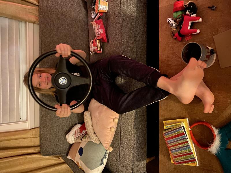 Santa brought Nico a steering wheel from a 1985 BMW
