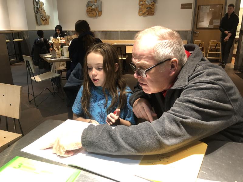 Maya & Gramps working on some math