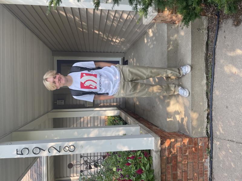 He wasn't super thrilled about that when I woke him up and that is the picture on the left. The picture on the right is the AFTER pic with a smile that doesn't say, I am not happy about this situation. The After being a shower and selecting a proper outfit. Much more confident smile as he exudes his too cool for school sophomore confidence.