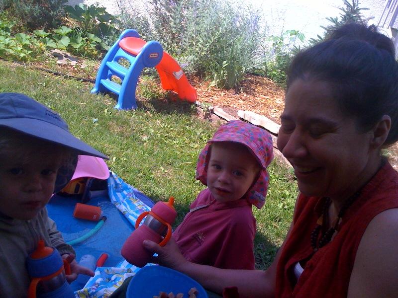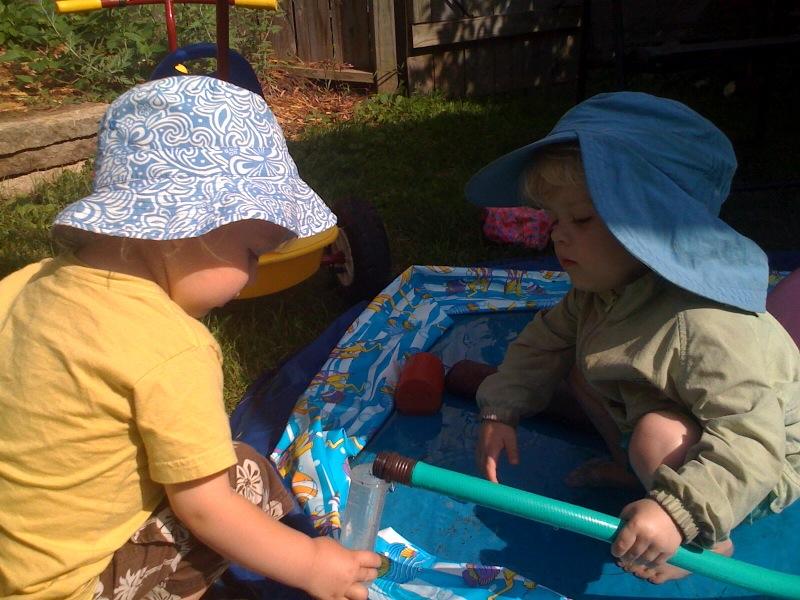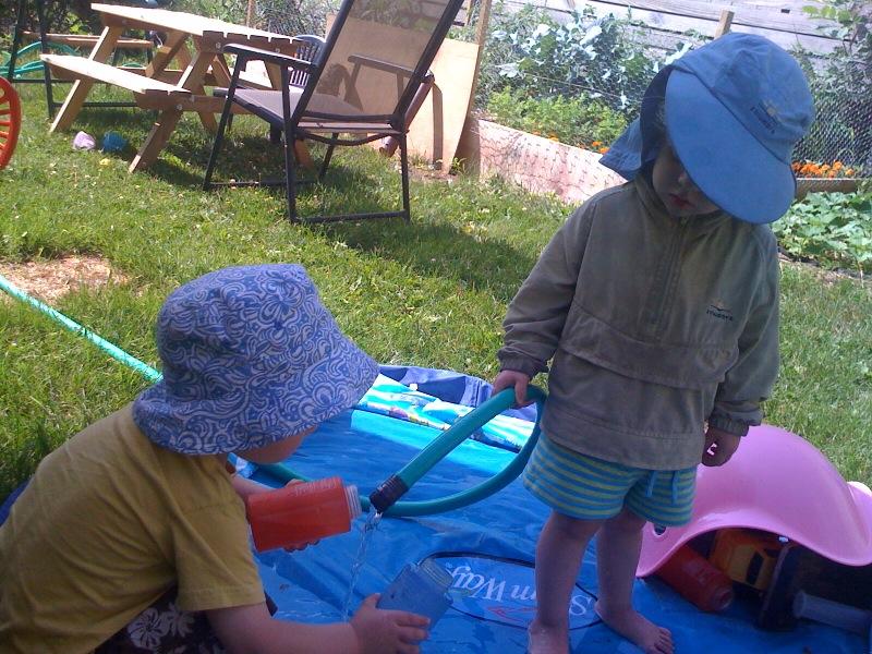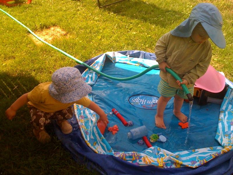 Finn fills the pool with Nico's help