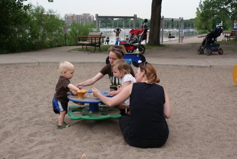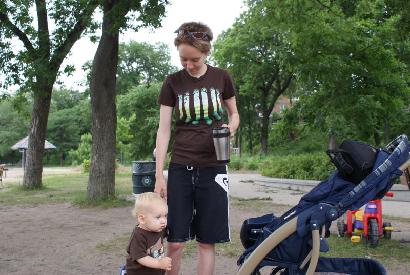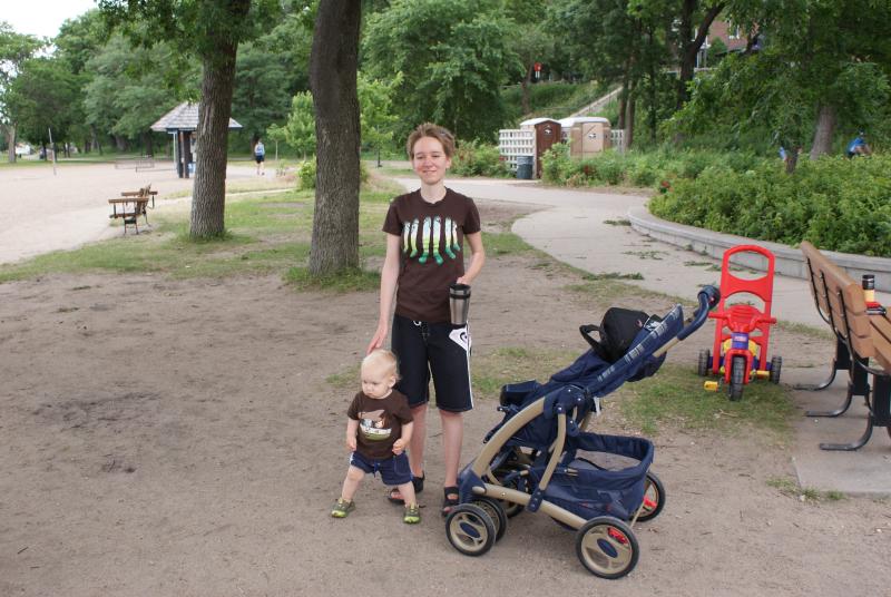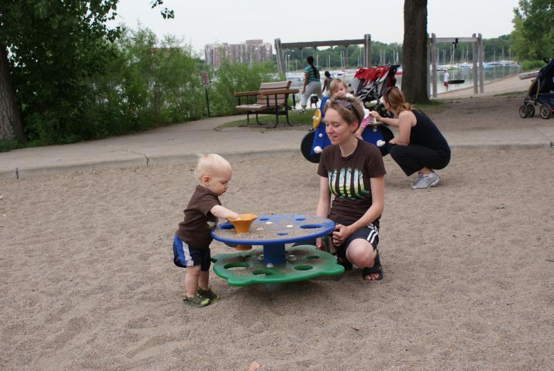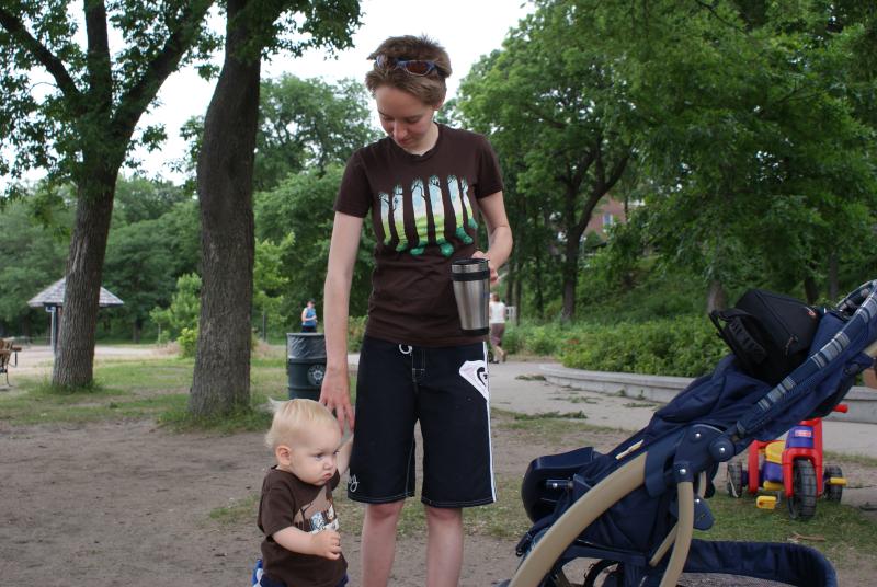 We get to the "tot lot", a playground on the eastern shores of Lake Calhoun, and we get Nico out of the stroller and he lands just as he appears in this picture. He stands there for a few minutes without moving his feet and surveys the playground intently. It struck me as kinda funny, perhaps only in a chuckle kind of way, but funny nonetheless.