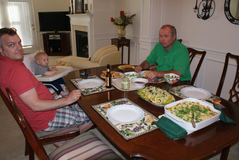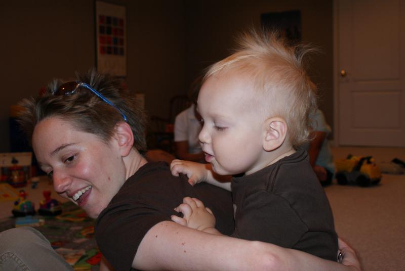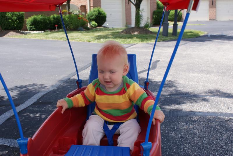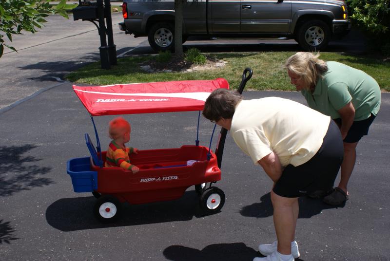 Nico looked away as Emily tried to check him out. We took the neighbor's wagon around the neighborhood and caught Emily at home. Grandma took Nico on a couple tours a day and he met A LOT of neighbors...