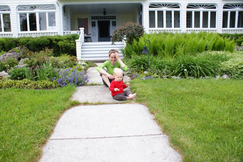 There's a barge passing by as we look out on the garden and Lake Huron...