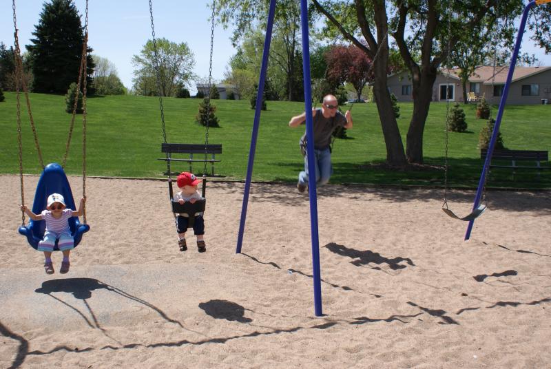 Aunt Josephine and Nico enjoying a swing on a spring day