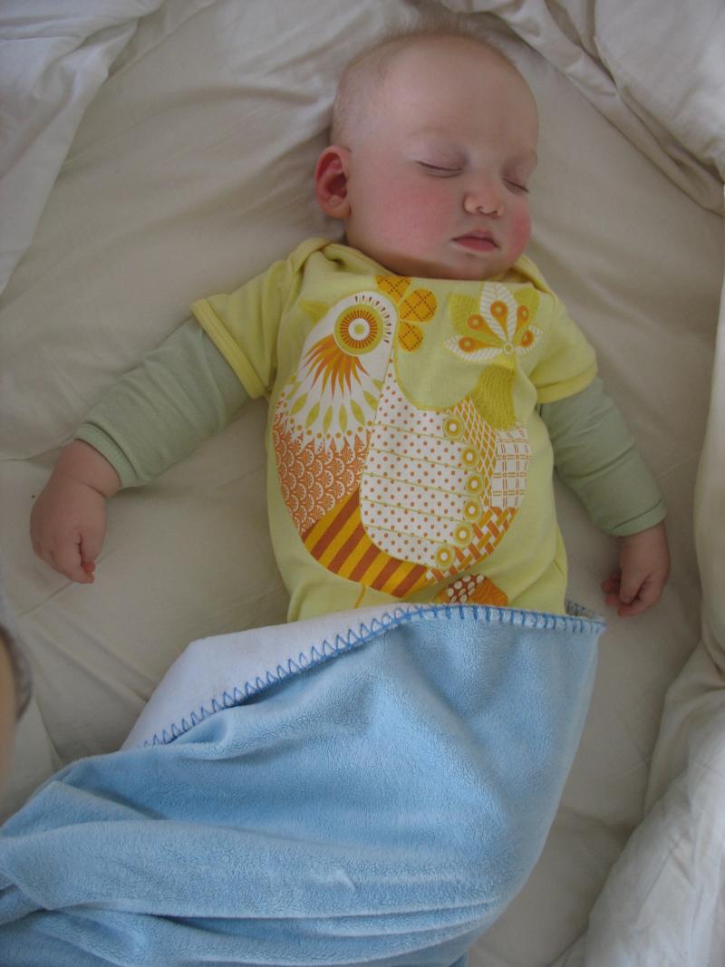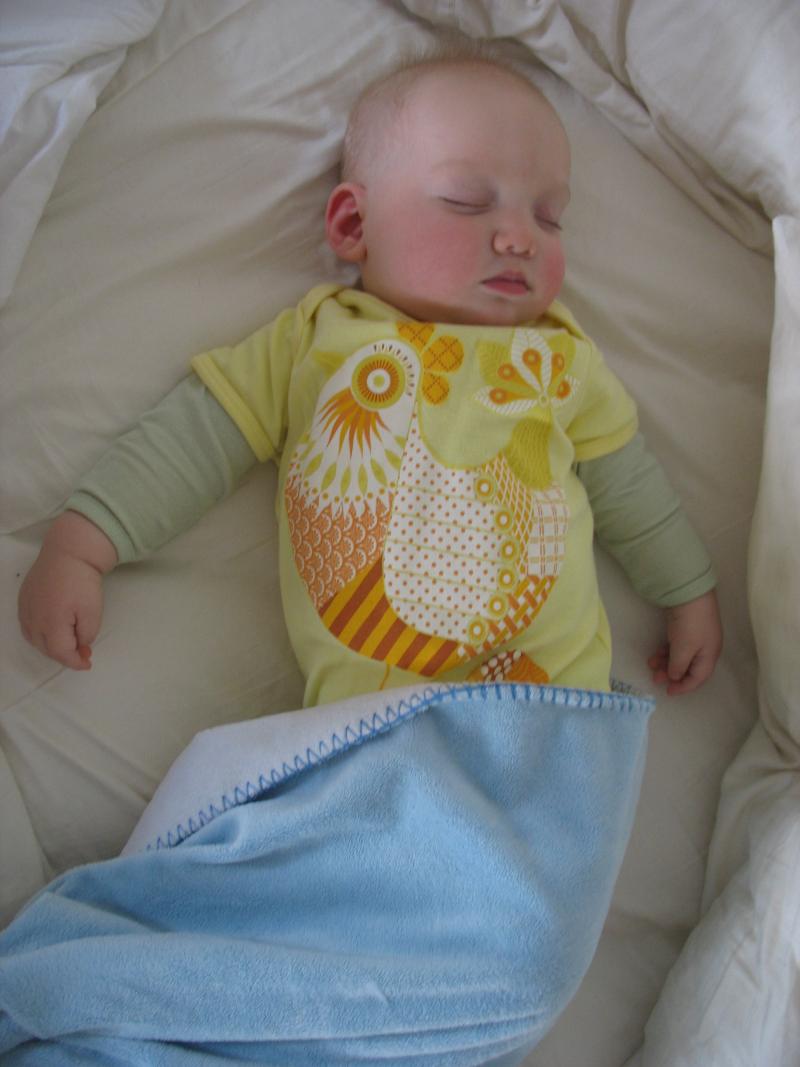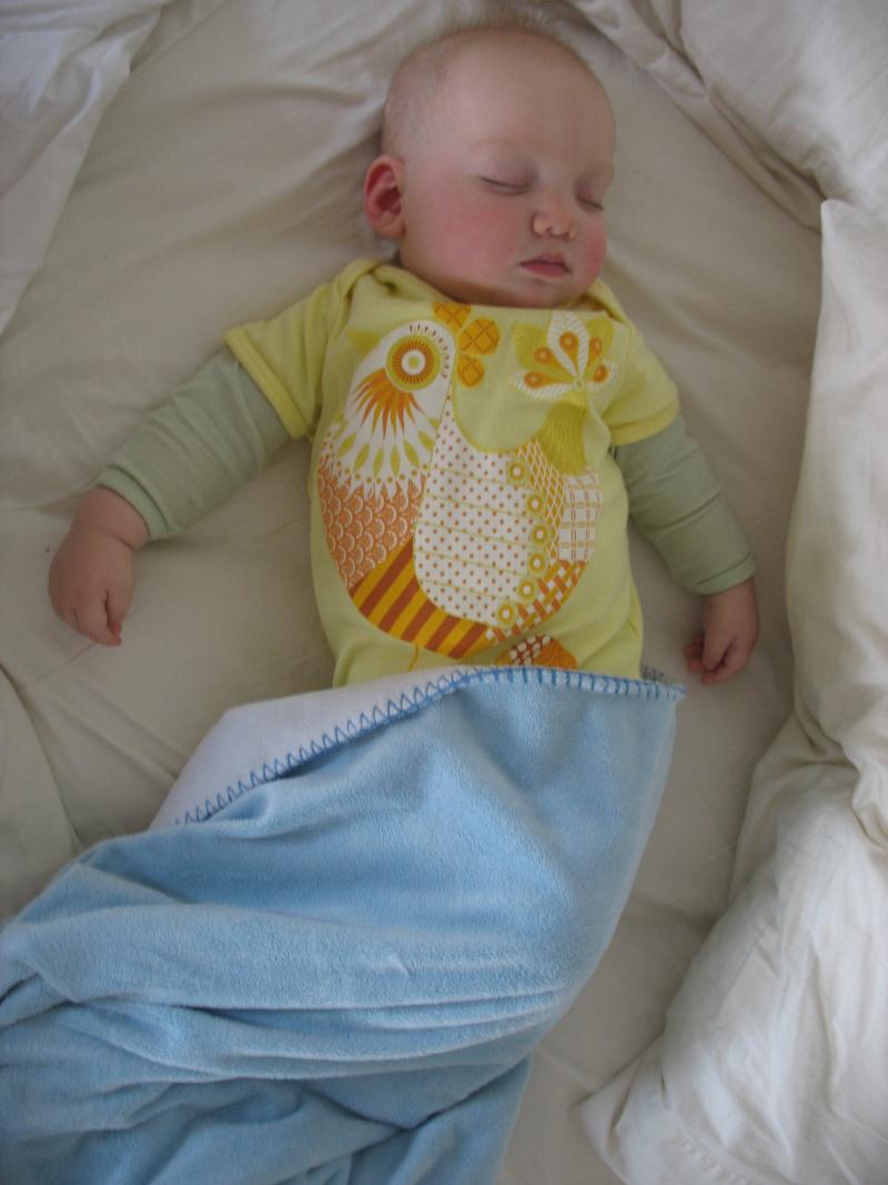 Mama woke up this morning and said, I've just got 10 minutes left to finish up the blanket. So a sewing she went and here's Nico taking a nap wrapped up in it!