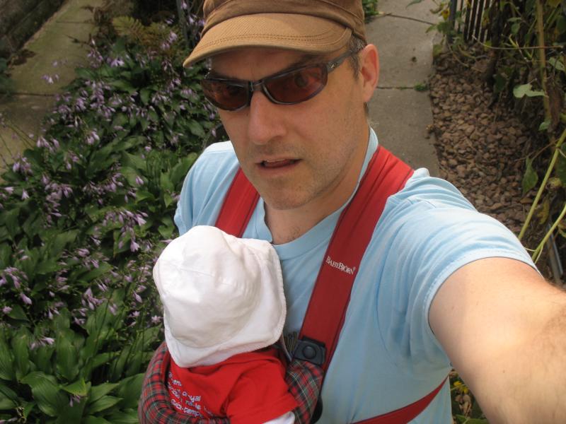 Nico experienced his first fall colors today during an afternoon garden walk. The cut-leaf sumac out front started turning red.