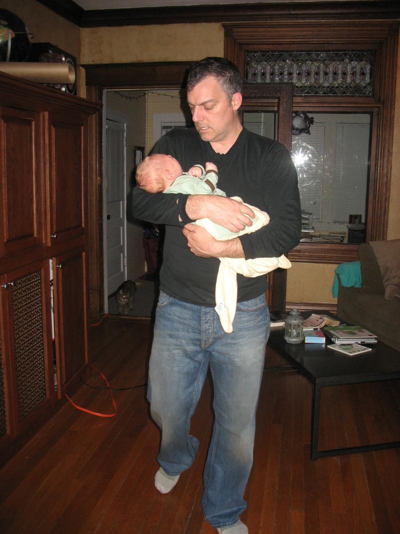 Daddy pacing with crying baby
