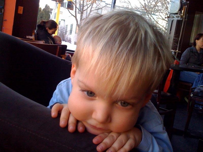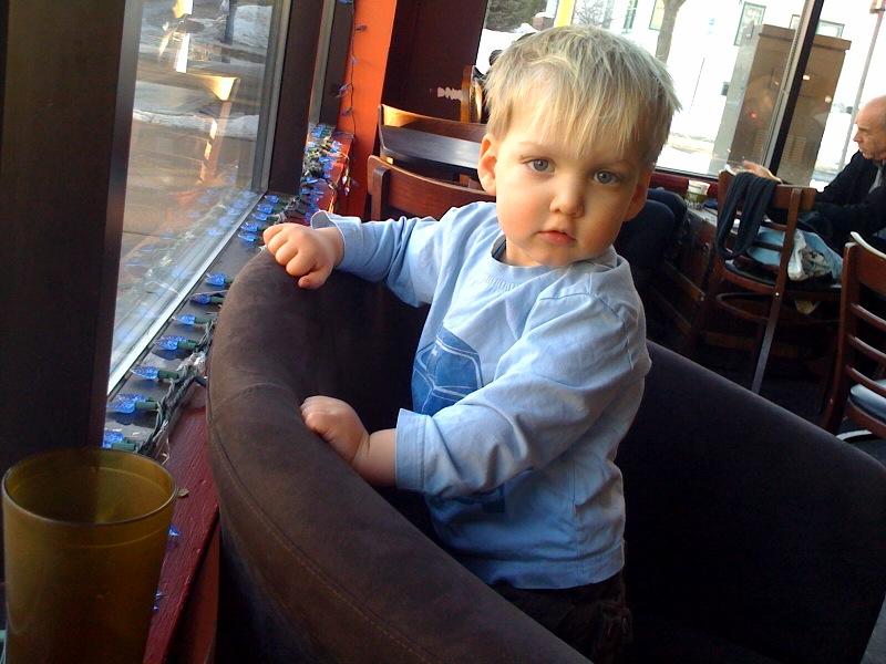 Nico peeks over the chair